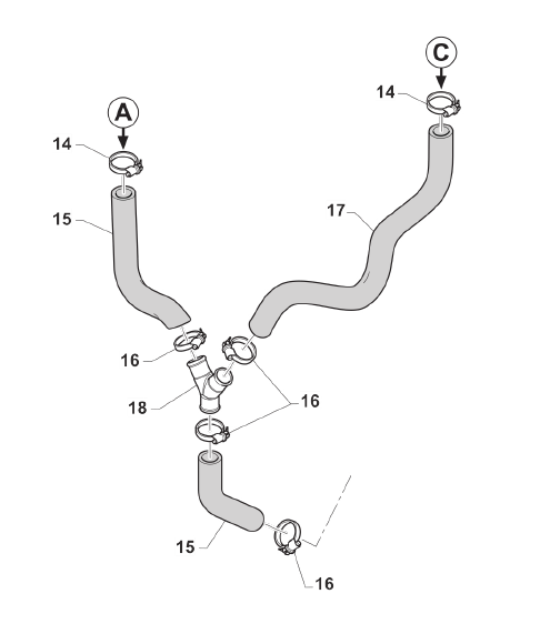 Kühlerschlauch links oben, 250/300 4T Fi Twinpipe , # F21440.2.